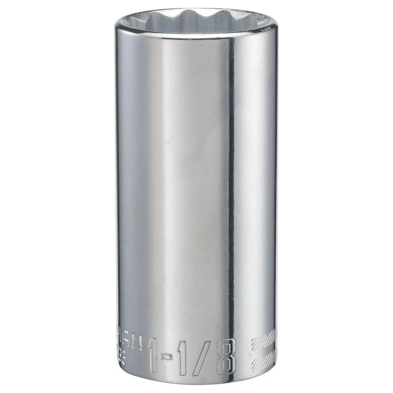 1/2-in. Drive 1-1/8-in. 12 Point SAE Deep Socket features a deep well construction and internal construction designed to engage with the flats of fasteners. This allows for the user to reach those hard to reach fasteners and torque without the fear of stripping a bolt.