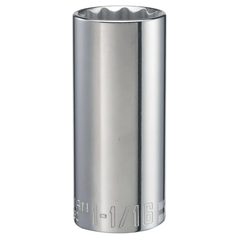 1/2-in. Drive 1-1/16-in. 12 Point SAE Deep Socket features a deep well construction and internal construction designed to engage with the flats of fasteners. This allows for the user to reach those hard to reach fasteners and torque without the fear of stripping a bolt.