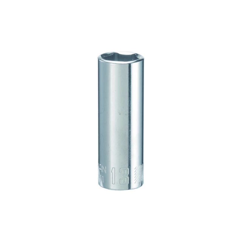 13 mm 6-point deep 1/4 inch drive socketย isย easy-to-readย making it the ideal choice. While having dual markings, a laser-etched size marking as well as the standard stamp markings, this craftsman socket is easy to locate so you have the right tool for the right job. Great for working in low-lit or greasy environments. Permanent marking resists chipping, fading and corroding. Headlock grip gives more contact on the flats of the fastener for more turning force.
