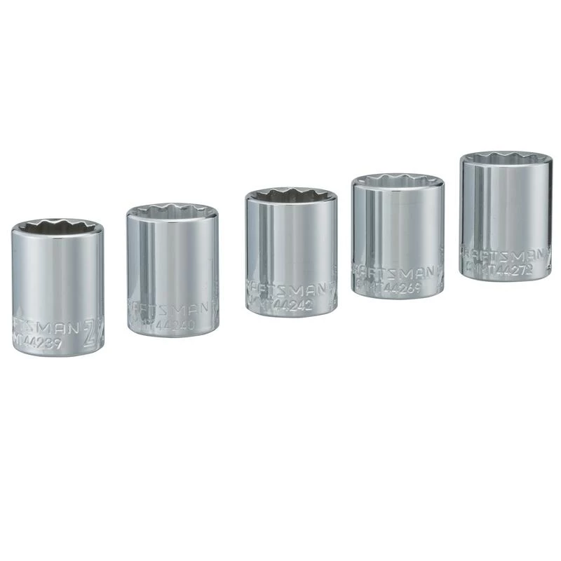 The 5 piece large Size Metric Socket Set has high-visibility, high-contrast Easy-To-Read sockets with easy-to-see size markings. This set resists fading, chipping and corroding and it consists of 1/2 inch drive 12 point sockets.