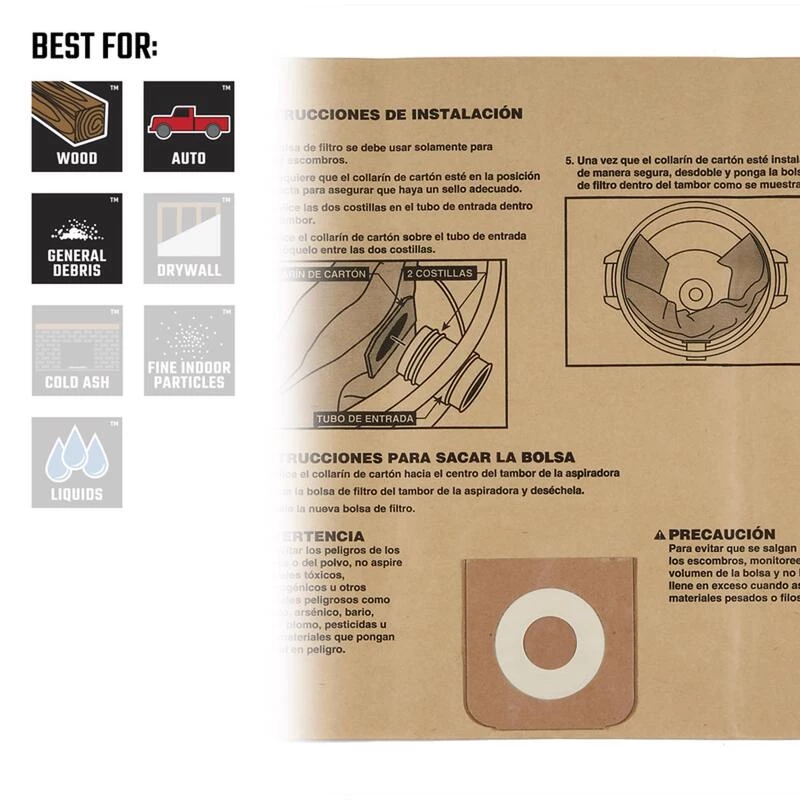 The CRAFTSMAN 16 & 20 Gallon General Purpose Dust Collection Bags for wet/dry vacs are designed for pick-up of everyday dirt and other dry debris. They help contain all the debris from your home improvement projects, big or small and keep your vac from blowing the fine particles back into the air. Bags are easy to install by attaching to vacuum port inside tank without needing tools and are even easier to toss away. Includes 3 dust bags.