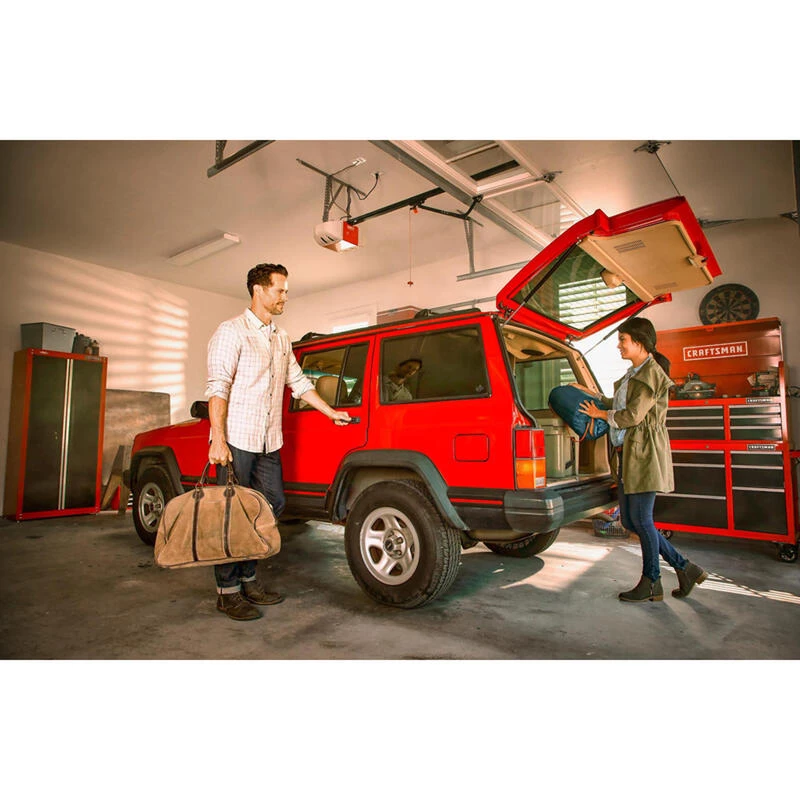 - Smartphone control – with built-in Wi-Fi, you can monitor and control your garage door from anywhere at anytime using the Craftsman myQ App