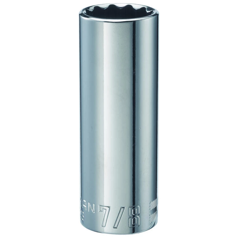 1/2-in. Drive 7/8-in. 12 Point SAE Deep Socket features a deep well construction and internal construction designed to engage with the flats of fasteners. This allows for the user to reach those hard to reach fasteners and torque without the fear of stripping a bolt.